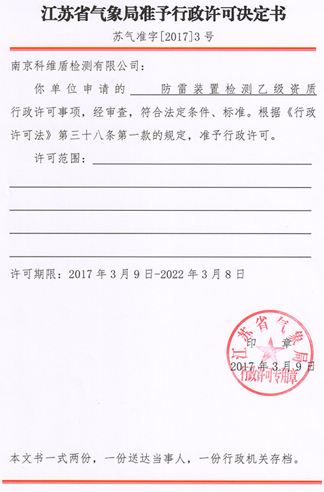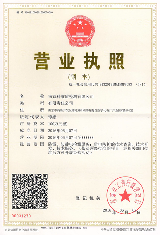 南京科维盾检测有限公司(简称:科维盾检测/KEVDON Testing)坐落于南京国家级高新技术产业开发区内,是国家认可的第三方检测机构,已具备气象系统的防雷装置检测乙级资质,专业从事新、改、扩建(构)筑物的跟踪、竣工检测和在用建构筑物的定期检测。