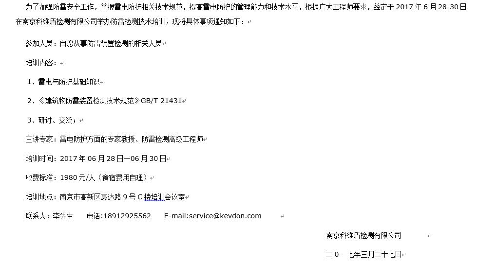 关于防雷装置检测技术培训的通知